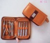 The manicure tools are made of stainless steel , it comes with a elegant leather PU case. MOQ :2,000 sets This 8 pcs manicure set is included: *Nail clipper *Cuticle nipper *Tweezer *Scissors *File *Cuticle trimmer *Cuticle groomer *Ear cleaner Standard packing : Each set in a polybag and whit box
